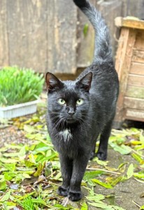 Die schwarze Schönheit Gypsie gehört zu unseren Hofkatzen. Sie kam im September 2023 als erwachsene Fundkatze in unsere Obhut, wurde geimpft, kastriert und versorgt, signalisierte uns aber ihren deutlichen Freiheitsdrang.