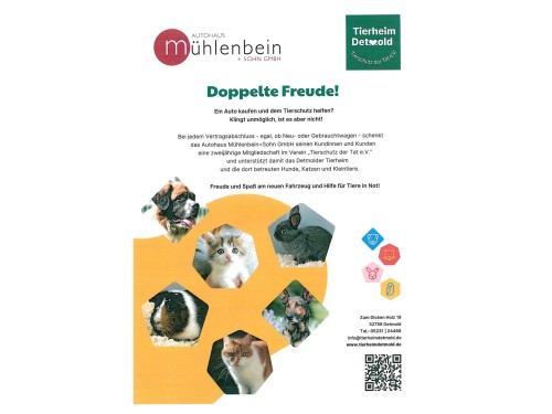 startet das Detmolder Autohaus Mühlenbein + Sohn GmbH eine Aktion, durch die man beim Autokauf unser Tierheim unterstützen kann.