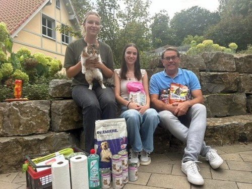 Drei Auszubildende der Diakonis-Pflegeschule Lage besuchten uns im Tierheim und hatten Futter für unsere Katzen im Gepäck.