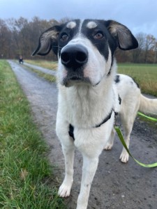 Unsere hübsche Aury trägt ein schwarz-weißes Fellkleid mit einer schönen Zeichnung im Gesicht. Sie hat süße Schlappohren und einen liebevollen Blick mit treuen Augen. Aury zeigt sich aktuell sehr verträglich mit anderen Hunden. Insgesamt geht sie Konflikten hier eher aus dem Weg, und auch Hundebegegnungen an der Leine stellen bisher kein Problem für sie dar. Aury ist sehr lieb und freundlich im Umgang und menschenbezogen. Streicheleinheiten genießt sie sehr und orientiert sich stark an ihrer Pflegefamilie, zu der sie aktiv die Nähe sucht. Sie ist bereits stubenrein und fährt problemlos im Auto mit. Auch das Laufen an der Leine und mit Geschirr meistert sie toll.