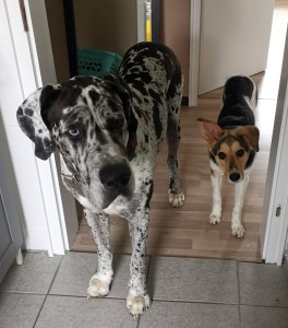 Außerdem hat er seit einer Woche einen neuen Kumpel. Buddy, eine 8 Jahre alte Dogge, mit der er gerne spielt, und die ihm vieles durchgehen lässt. Er erfreut sich einfach von morgens bis abends am Leben. Wir sind sehr zufrieden mit ihm.
