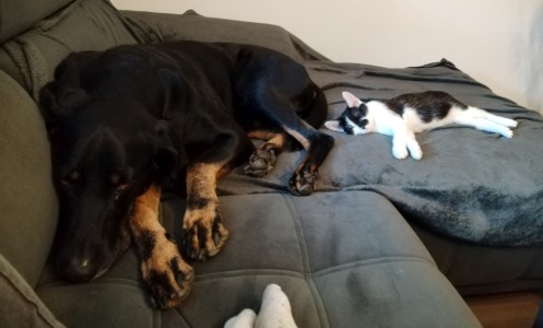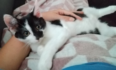 wir wollten uns melden bezüglich dem kleinen Oreo. Er hat sich super eingelebt und fühlt sich pudelwohl. Er frisst sogar gemeinsam mit unserer älteren Katzen aus einem Napf und genießt die Zweisamkeit mit seinem Hundekumpel. Wenn er uns morgens begrüßt, ist es einfach herrlich zu sehen, wie sehr er sich freut, auf seinen Namen reagiert er auch total super und läuft direkt zu uns hin, um dann wie ein ganz Großer zu schnurren und es sich beim Kuscheln richtig gut gehen zu lassen.