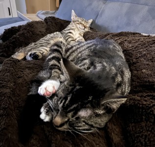 Wir haben uns vorsichtig kennengelernt, so wie Katzen das eben machen. Ein bisschen schnuppern, ein bisschen schauen – und dann ist etwas passiert, das sich ganz richtig angefühlt hat. Wir haben uns aneinandergeschmiegt und geschmust, als hätten wir aufeinander gewartet. Seitdem ist es nicht mehr so still. Ich fühle mich wieder komplett. Ich glaube, jetzt ist alles so, wie es sein soll. Mein Zuhause fühlt sich wieder warm an – und mein Herz auch.