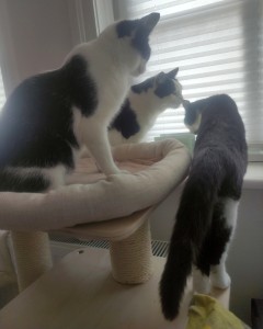 Byleth war sofort begeistert von einem neuen Freund und sie und Claudia (eigentlich Tulu*ś, **aber er ist eine kleine Diva und hat somit diesen Spitznamen bekommen) verstehen sich von Tag eins prächtig! Alear hingegen ist da ein bisschen zurückhaltender, dennoch tolerieren sie sich und es kommt zu keinen Auseinandersetzungen. Mittlerweile laufen sie auch keine großen Bögen mehr umeinander und sitzen sogar manchmal zusammen auf der Fensterbank und haben Knurrwettbewerbe mit den Nachbarkatzen.