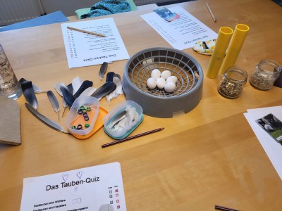 Zu Beginn des Treffens konnten die insgesamt 28 Kinder ihr Wissen in einem Taubenquiz testen und dabei lernen, dass das Futter für ein gesundes Taubenleben aus Sonnenblumenkernen, Weizen, Mais, Muschel-Grit und Hanf besteht und nicht, wie fälschlicherweise oft angenommen, aus Brot.
