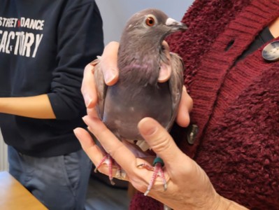 Als Botschafterin für den Taubenschutz hatten die beiden Tierschützerinnen die zahme Taube Hexe mitgebracht, die als verletztes Küken gefunden worden war und heute ein glückliches und sicheres Leben führen darf. Der gefiederte Gast erfuhr viel Zuneigung und wird dabei helfen, unsere zu Unrecht verunglimpften Stadttauben zukünftig in neuem Licht zu sehen.