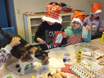 Unsere Hofkatze Lilo hat den Kindergruppen auch diesmal wieder einen Besuch abgestattet, sich Streicheleinheiten abgeholt und gemeinsam mit den Kindern Ausschau nach dem Weihnachtsmann gehalten.