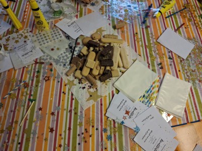Butterbrots-Tüten wurden mit Stickern hübsch verziert, mit bunten Konfetti gefüllt und mit einem Blasrohr versehen. Jedes Kind durfte seine Tüte natürlich mit nach Hause nehmen. Die restlichen Knalltüten können im Tierheim gegen eine kleine Spende erworben werden.