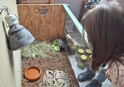 Auf der Kleintierstation haben wir dann noch unsere Griechische Landschildkröte Cleo besucht. Zum Abschluss bekamen die Kinder kleine Geschenke und durften ein Radiergummi in Form einer Schildkröte, ein Päckchen Futter- und Gartenpflanzen-Mischung sowie Malbilder mit nach Hause nehmen.