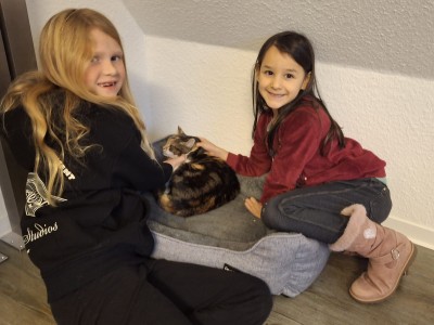 Die Oberaufsicht übernahm unsere freundliche Hofkatze Lilo, die die Aktion sehr spannend fand und sich bei den Kindern ihre Streicheleinheiten abholte.